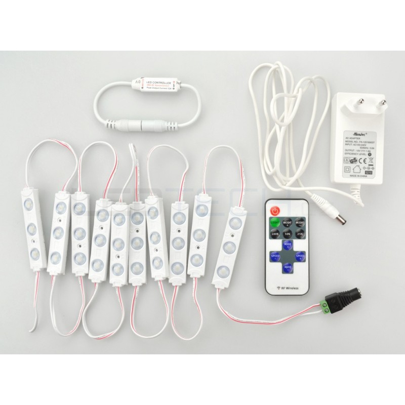 Sada typu plug and play - rozbalíte, zasunete konektory, připevníte pásky a ihned svítíte.