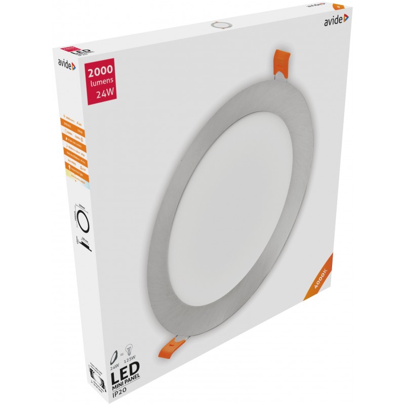 Kulatý zápustný panel s LED páskem po boku, ultratenký design, nestmívatelný zdroj a sada pružinek součástí balení.