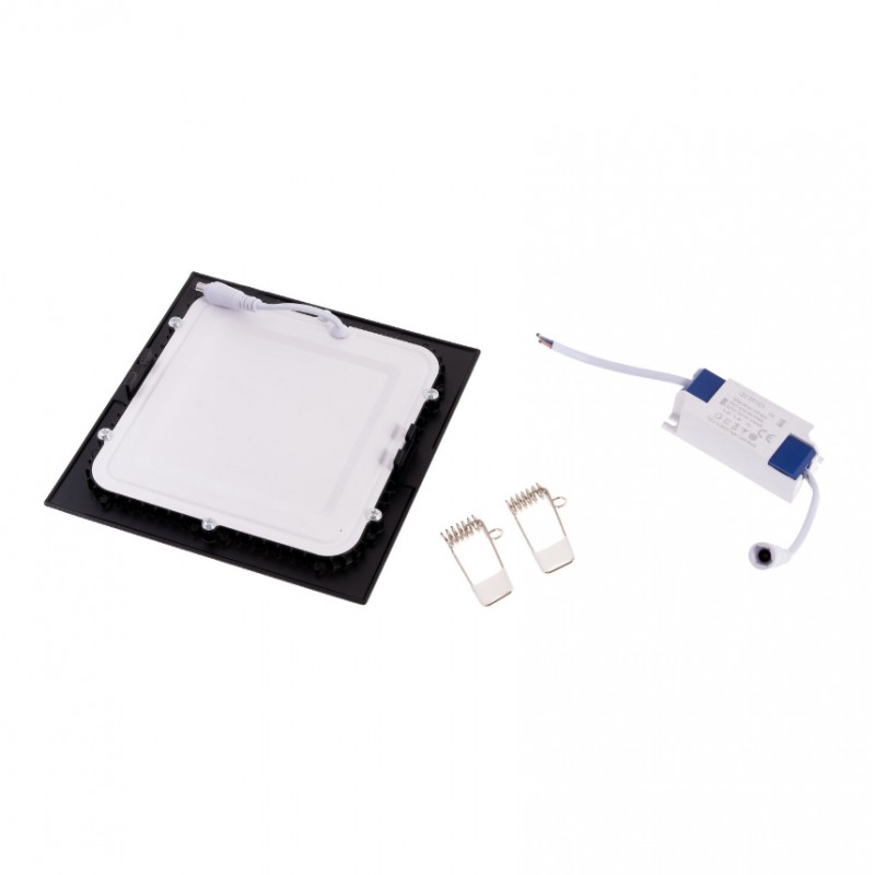 Čtvercový ultratenký mini LED panel 12W. Díky bočnímu nasvětlování nejsou jednotlivé LEDky při rozsvícení viditelné a lze použít i ultratenký design. Součástí balení je nestmívatelný zdroj pro napájení panelu a sada 2 pružin pro instalaci do podhledu.