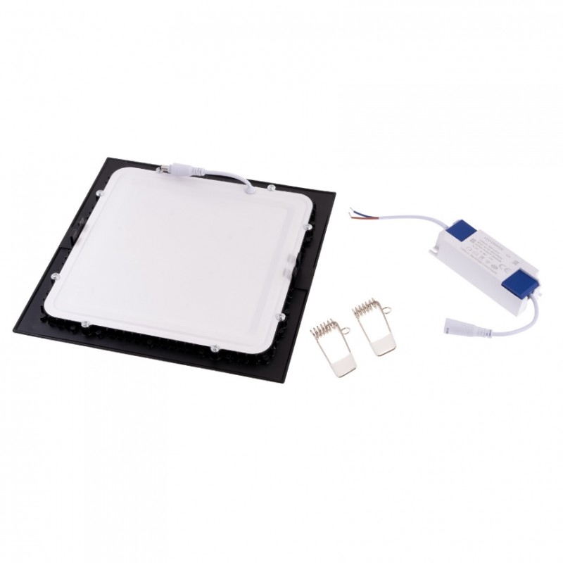 Čtvercový ultratenký mini LED panel 17W. Díky bočnímu nasvětlování nejsou jednotlivé LEDky při rozsvícení viditelné a lze použít i ultratenký design. Součástí balení je nestmívatelný zdroj pro napájení panelu a sada 2 pružin pro instalaci do podhledu.