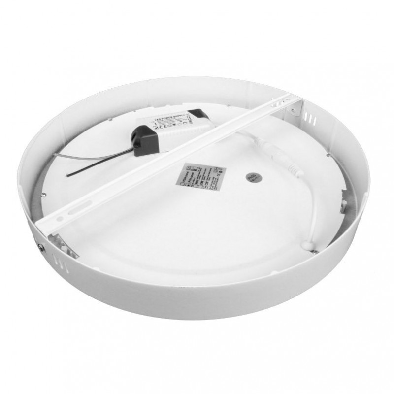 Kulatý přisazený LED panel 24W. Díky bočnímu nasvětlování nejsou jednotlivé LEDky při rozsvícení viditelné.
