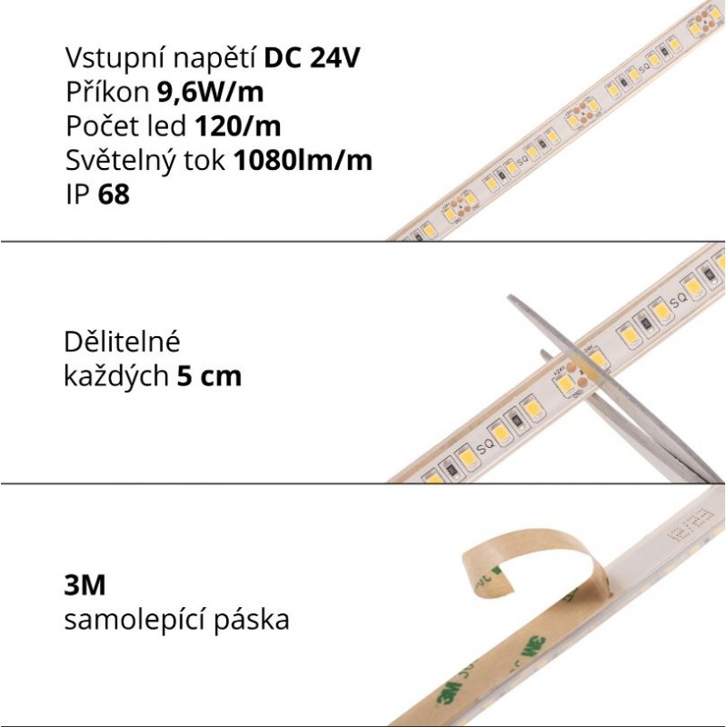 24V, 9,6W/metr, 120LED/metr, IP68,...