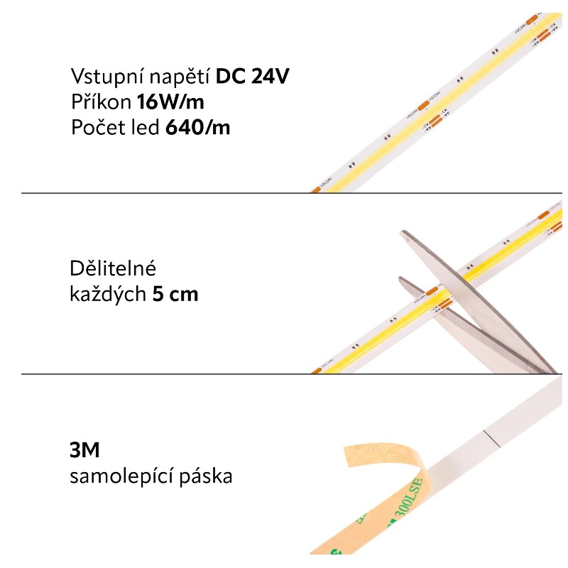 LED pásek COB CCT 24V, 16W/m, 640LED/m