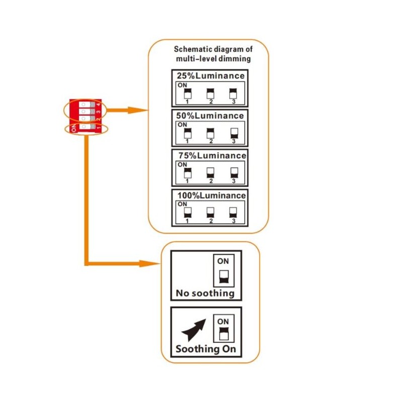 Tyto vlastnosti se nastavuji u výstupní svorkovnice DIP přepínači na zdroji. Při využití těchto vlastností je nutné, aby osvětlení zapojené na zdroje bylo stmívatelné. Například nízkonapěťové LED pásky většinou smtívatelné jsou, ale již ne všechny nízkonapěťové LED žárovky musí být stmívatelné. V případě použití nesmívatelných produktů může dojít k poškození zdroje. Zdroj nelze používat s PWM stmívači umístěnými na výstupu zdroje. V případě použití může dojít k poškození zdroje i stmívače.