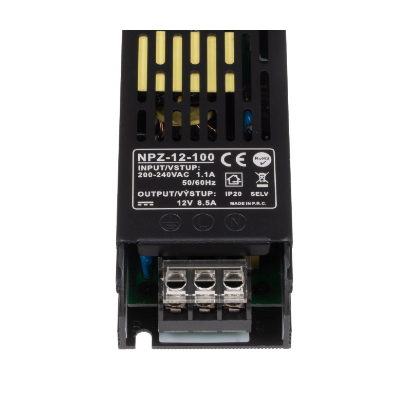 LED elektronický spínaný zdroj (trafo) 12V 100W v krytí IP20 je určený pro vnitřní použití. Vhodné pro nízkonapěťové LED produkty jako jsou například LED pásky, LED žárovky a další LED osvětlení.