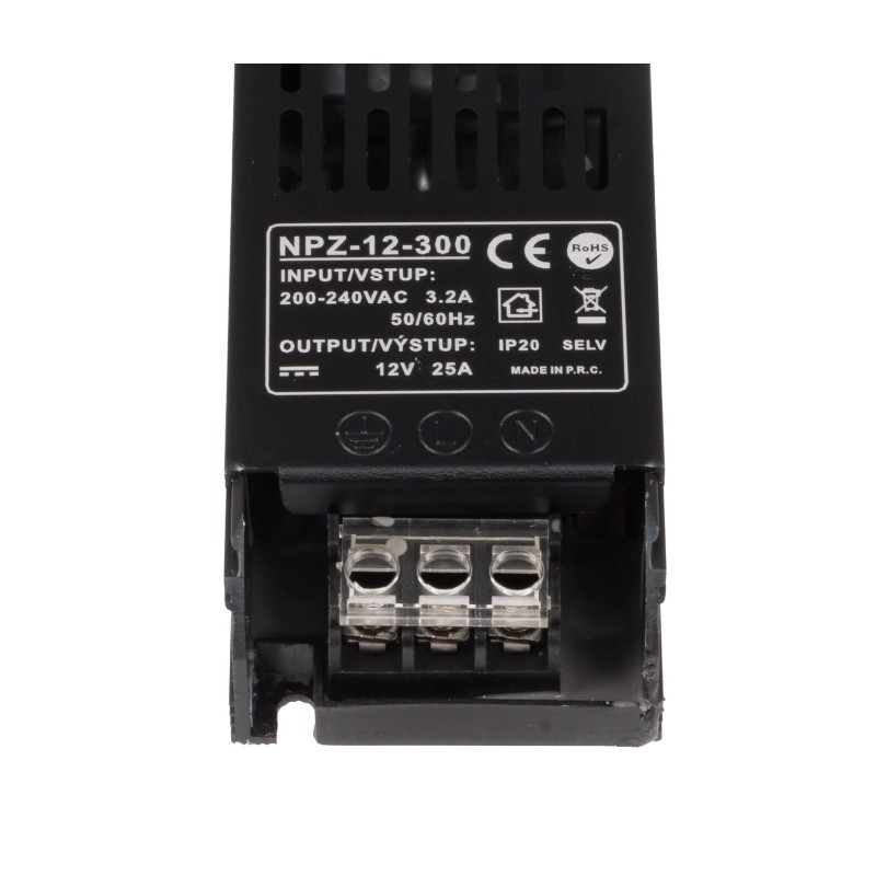 LED elektronický spínaný zdroj (trafo) 12V 300W v krytí IP20 je určený pro vnitřní použití. Vhodné pro nízkonapěťové LED produkty jako jsou například LED pásky, LED žárovky a další LED osvětlení.