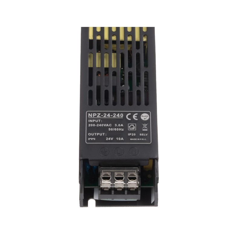 LED elektronický spínaný zdroj (trafo) 24V 240W v krytí IP20 je určený pro vnitřní použití. Vhodné pro nízkonapěťové LED produkty jako jsou například LED pásky, LED žárovky a další LED osvětlení.