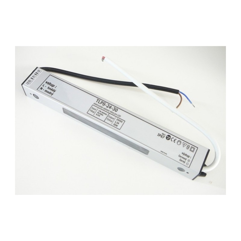 LED zdroj pro LED pásky (trafo) 24V 30W. Voděodolný elektronický spínaný zdroj s ochranou IP67.