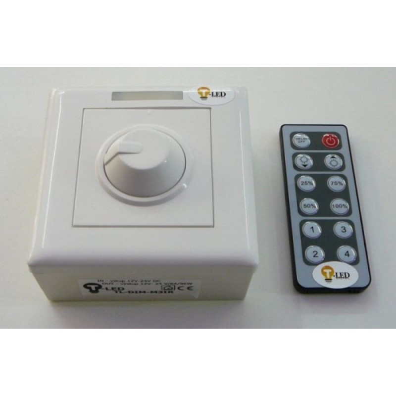 Stmívač jednokanálový manuální a IR ovládání pro ovládání intensity jasu LED pásků, stmívatelných LED žárovek 12V a jednobarevných LED modulů.