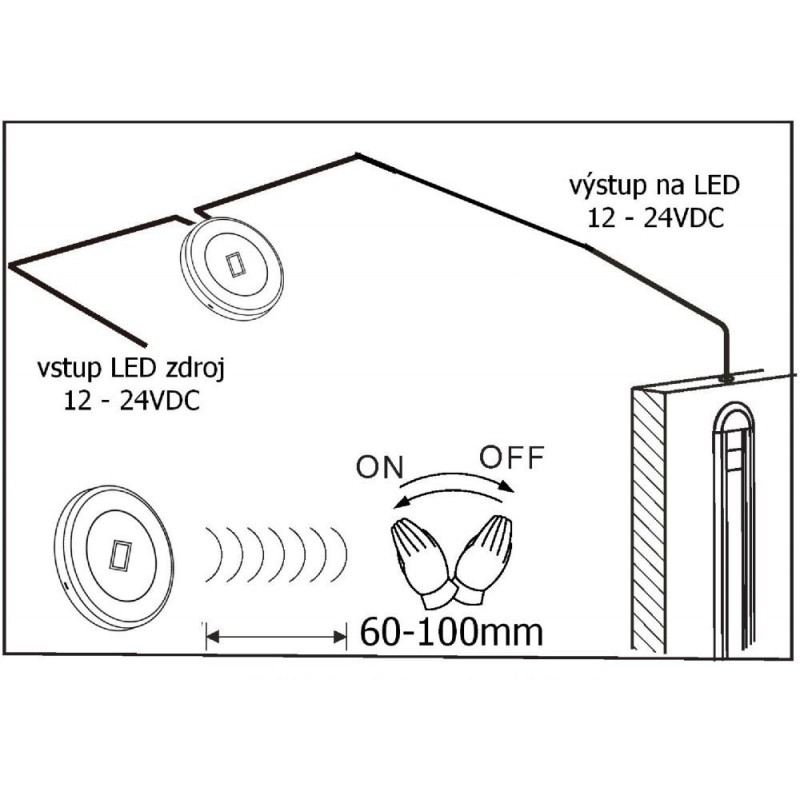 Spínač mávnutí s IR senzorem k zapnutí a vypnutí jakéhokoliv světelného či jiného zařízení pouhým pohybem ruky a provozním napětím 12-24VDC