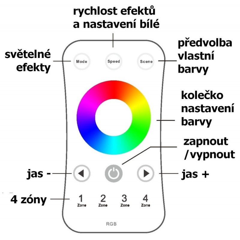 LED dálkový ovladač čtyřkanálový RGB 4KR, dálkové RF (radiofrekvenční) ovládání, nový design a funkce