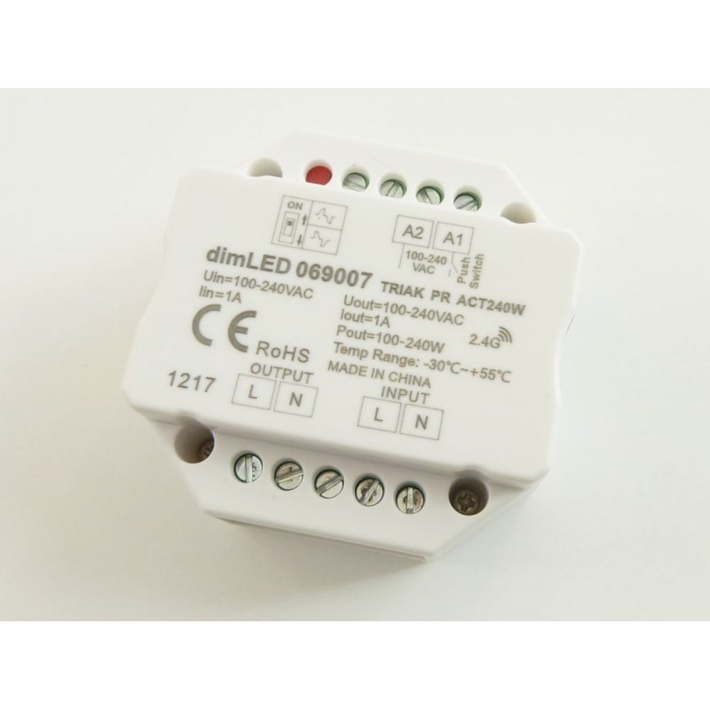 Stmívač a přijímač pro stmívatelné LED žárovky a panely na 230V, možnost použití tlačítka při instalaci pod vypínač, lze ovládat i různými druhy dálkových ovladačů řady dimLED z naší nabídky, kterými můžete zárověň ovládat i systémy na 12 či 24V - vše tedy řídíte jedním ovladačem. Díky těmto možnostem patří mezi špičku na našem trhu.