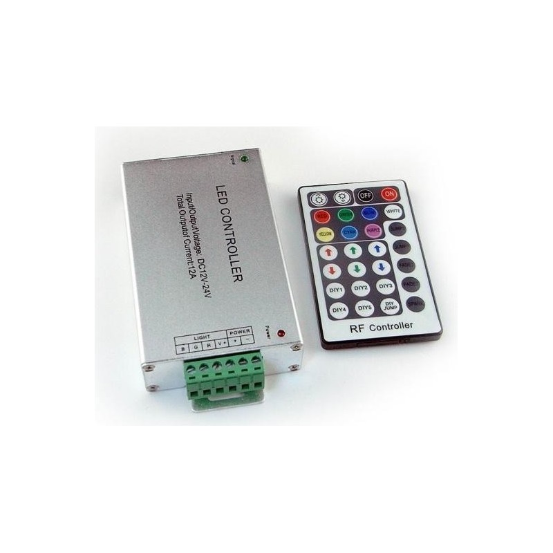 LED ovladač RGB LED pásků 12-24VDC, 3x4A/ 144W celkem, RF ovládání, 28 tlačítek, programovatelný