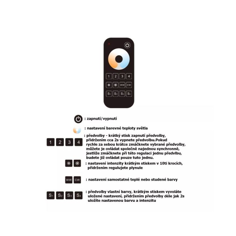 LED dálkový ovladač čtyřkanálový OVM CCT 4KRM, dálkové RF (radiofrekvenční) ovládání, nový design a funkce