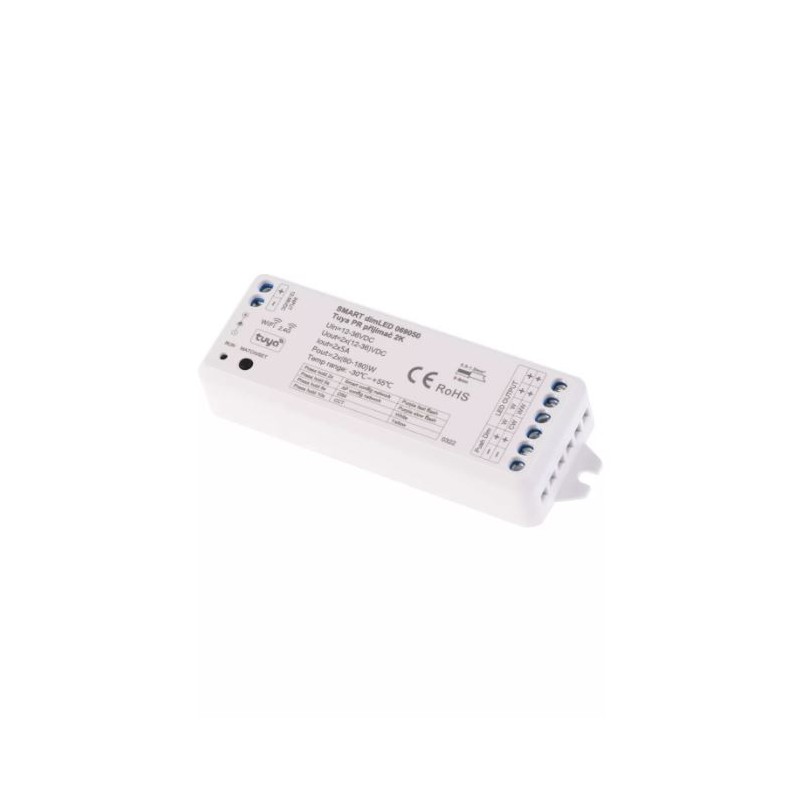 Chytrý radiofrekvenční přijímač stmívač pro LED produkty s podporou aplikace Tuya. Přijímač může být ukrytý (za zdí, sádrokartónem či ve skříni), není nutná přímá viditelnost přijímače pro ovladač. Přijímačem dimLED Tuya PR 2K má 2 výstupy a lze ovládat: