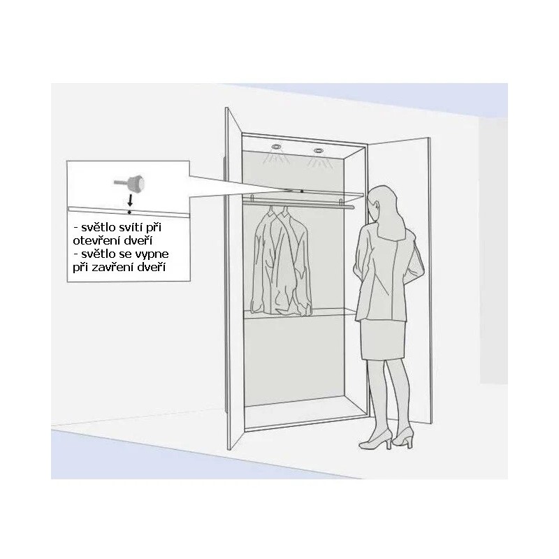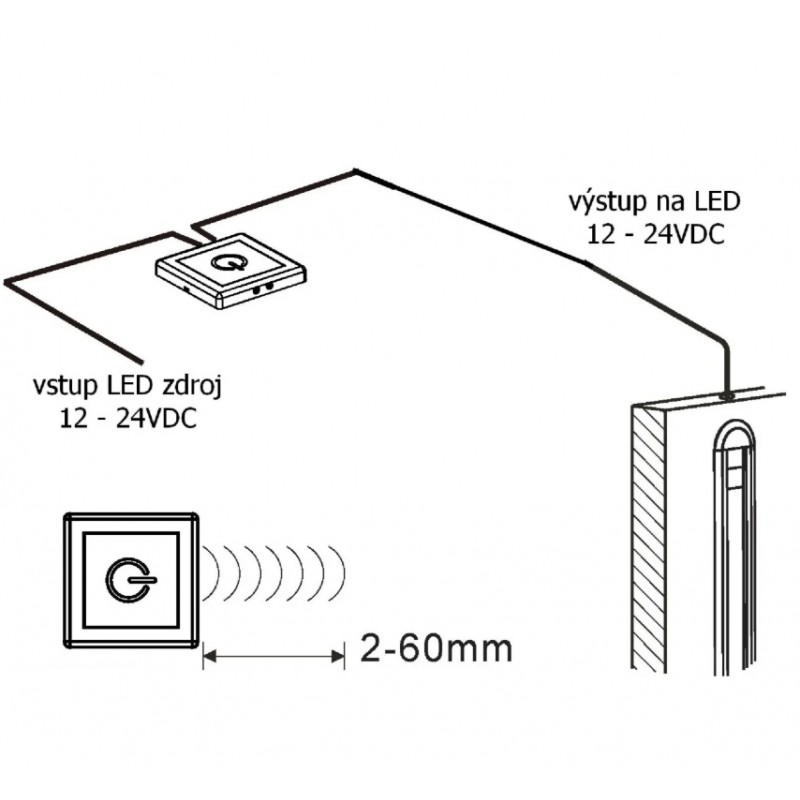 Spínač skříňový s IR senzorem pro skříně či zásuvky s vitřním osvětlením k zapnutí a vypnutí jakéhokoliv světelného či jiného zařízení a provozním napětím 12-24VDC
