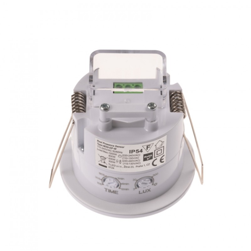 Mikrovlnné čidlo s detektorem přítomnosti a dosahem až 6 m. Čidlo MS9-DP se instaluje do podhledu s instalačním otvorem 63-66mm. Snímané pole čidla má kruhový (360°) úhel detekce, což znamená, že pokrývá celkový kruh o průměru 6 m (3 m do každé strany). Díky detektoru přítomnosti je čidlo citlivější než běžné pohybové čidlo a dokáže zaznamenat i jemný pohyb, například u sedící osoby, čímž eliminuje potřebu neustálého pohybu, jak je tomu u standardních pohybových čidel.