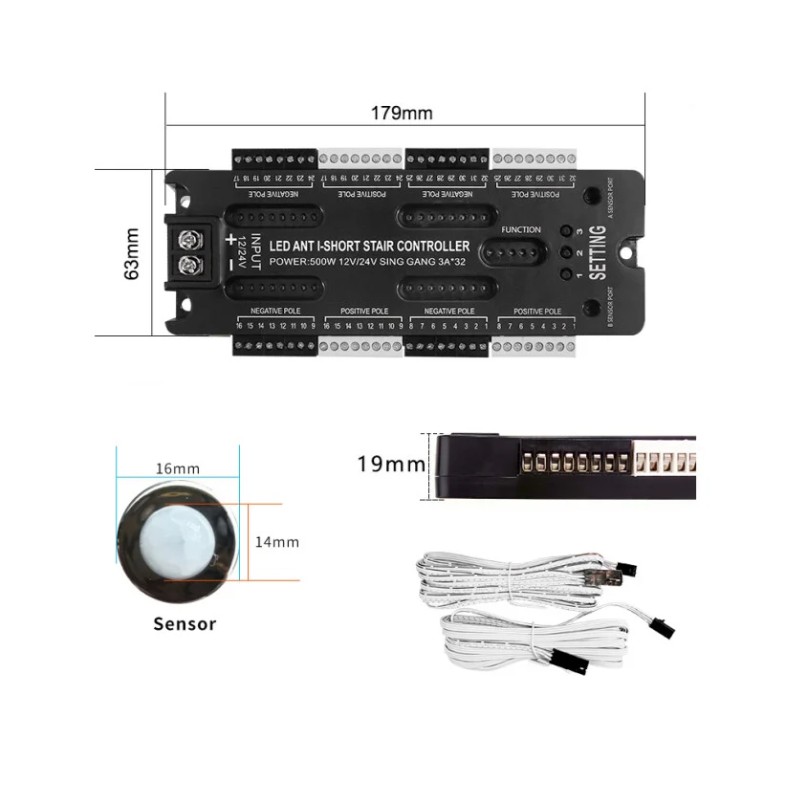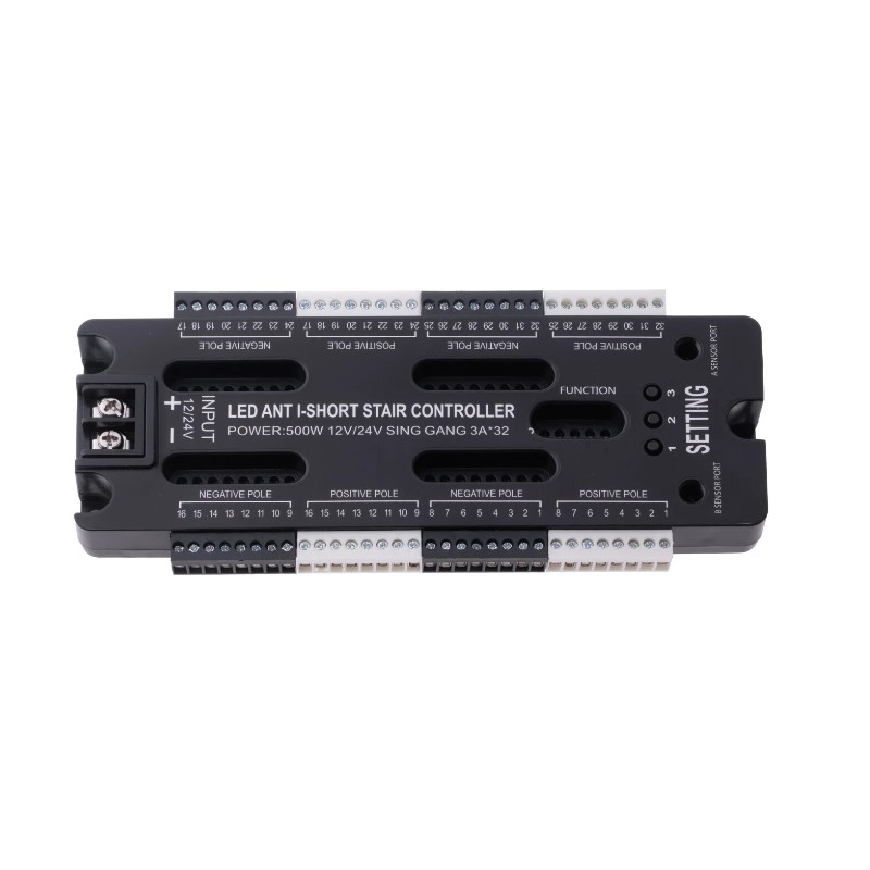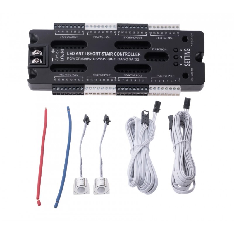 Ovladač 32BLS umožňuje snadné a intuitivní propojení jednobarevných LED pásků s jednotlivými schody. Ovladač podporuje až 32 nášlapů, což vám umožní přizpůsobit instalaci podle aktuální potřeby s možností budoucího rozšíření. Čidla při zaznamenání pohybu rozsvítí připojené LED pásky. Součástí balení jsou 2 pohybová čidla, kdy každé čidlo zapojíte na jeden konec schodiště. Snímací úhel pohybových čidel je 120° a vzdálenost detekce čidel je 1 až 3 metry. Senzor můžete instalovat pomoc držáků nebo držák sundat a zapustit. Ovladač je určený pouze pro použití v interiérech.