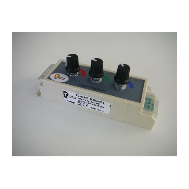 RGB stmívač tříkanálový manuální pro ovládání intensity jasu jednotlivých barev RGB LED pásků a modulů.