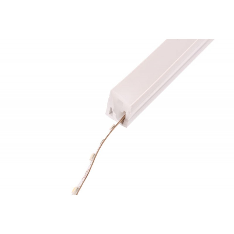 Silikonový rukáv určený pro instalaci s LED pásky. Díky mléčnému silikonu LED pásky poté svítí v rukávu celistvě a nejsou viditelné celé samotné diody. V obrázcích je použitý LED pásek 4,8W z hustotou 60 diod na metr.