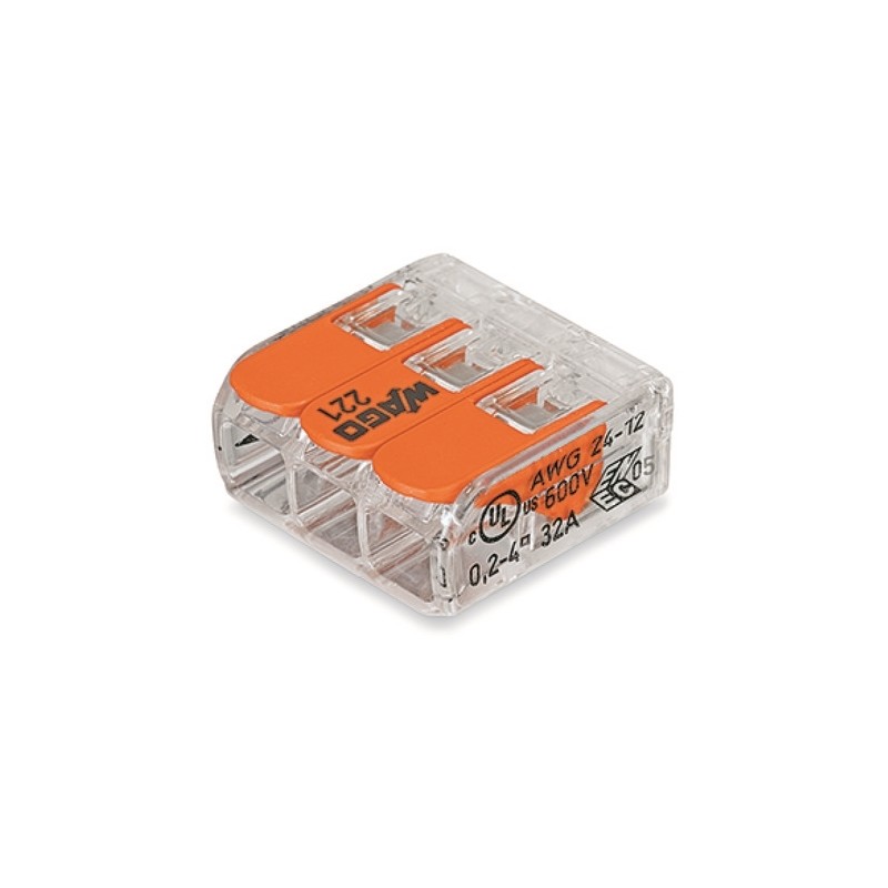 3 vodičových svorek s páčkou pro snadnou montáž a demontáž kabelů.