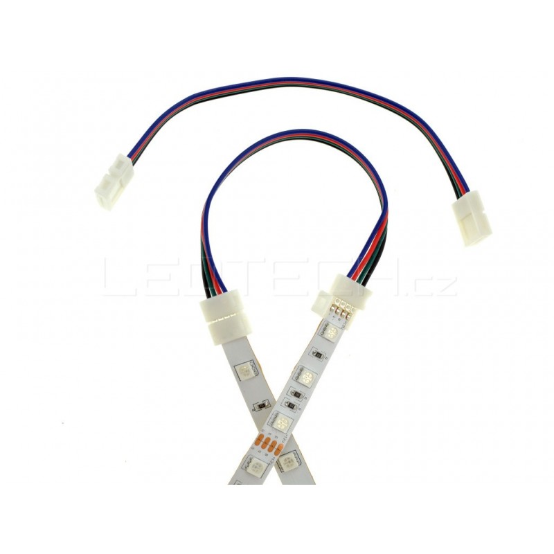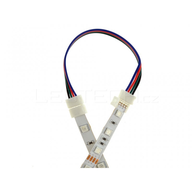 Spojka s kabelem pro LED RGB pásek o šířce 10 mm. Rozměr jedné kostičky u spojky je 19x21mm. Délka spojky včetně kabelu je 15-17cm.