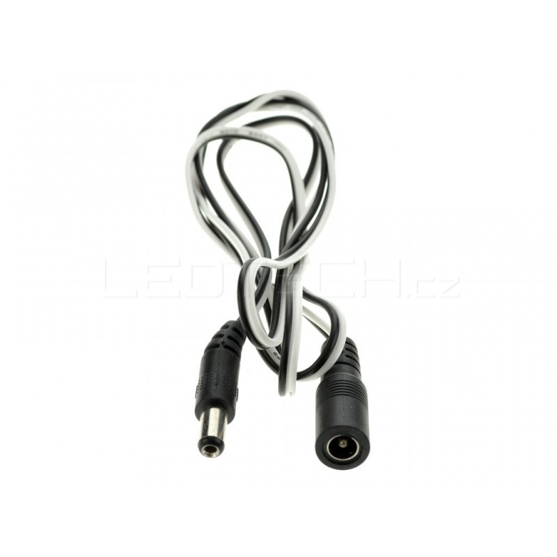 DC prodlužovací 1m dlouhý napájecí kabel s konektory. Rozměr 2,1/5,5mm.