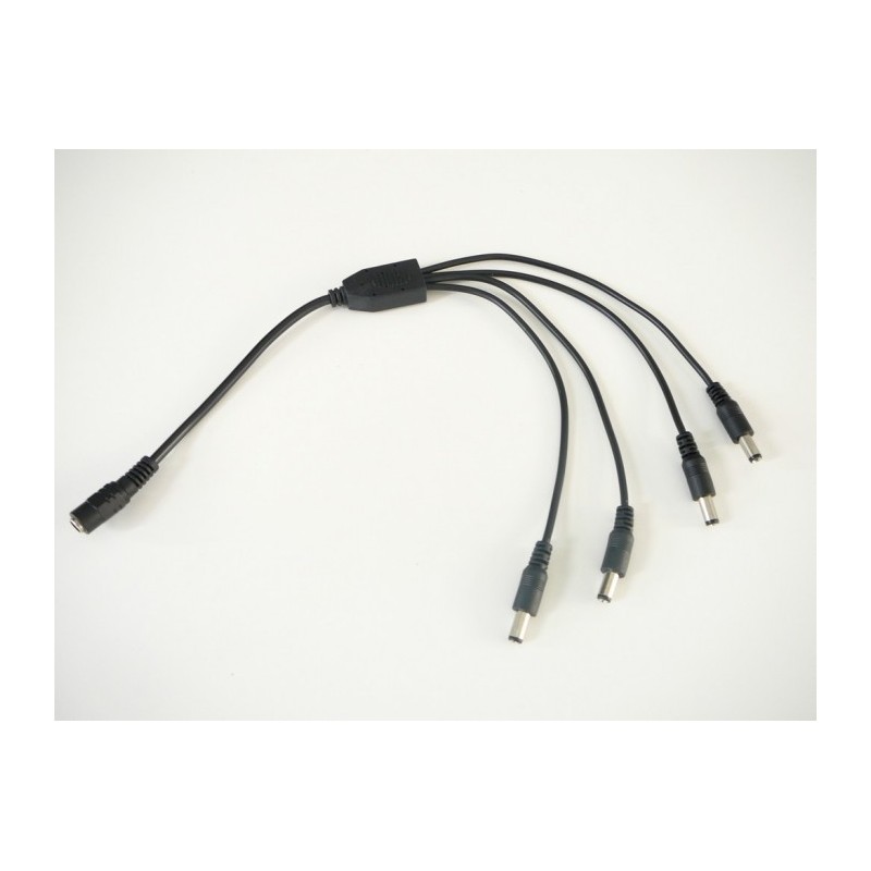 DC rozbočovač se 4 výstupy. Rozměr 2,1/5,5mm. Délka 40cm. Maximální zatížení 5A na vstupu, 1A na jednotlivých výstupech rozbočovače.