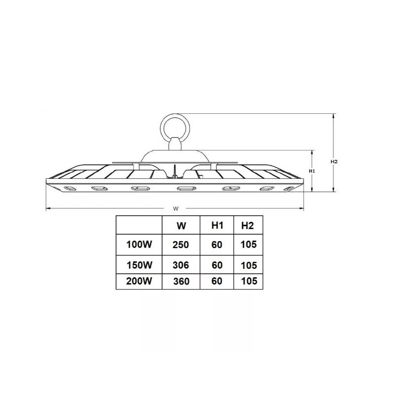 100W LED průmyslové svítidlo typu "High Bay", kterým lze nahradit průmyslové osvětlení ve skladech, průmyslových halách, fabrikách a dalších průmyslových objektech nebo jiných nemovitostí.
