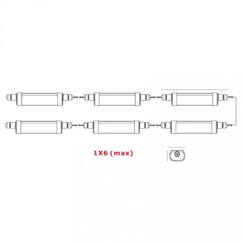 Led průmyslové svítidlo TRIPROOF TR150 60W nahrazuje klasické svítidlo se zářivkami. Součástí balení jsou 2 úchyty na připevnění na strop, 2x šroub a 2x hmoždinka a záslepka pro průchodku, která se použije v případě, pokud nepropojujete více svítidel za sebou. LED svítidlo TR150 můžeme zapojit až 6 ks za sebou.