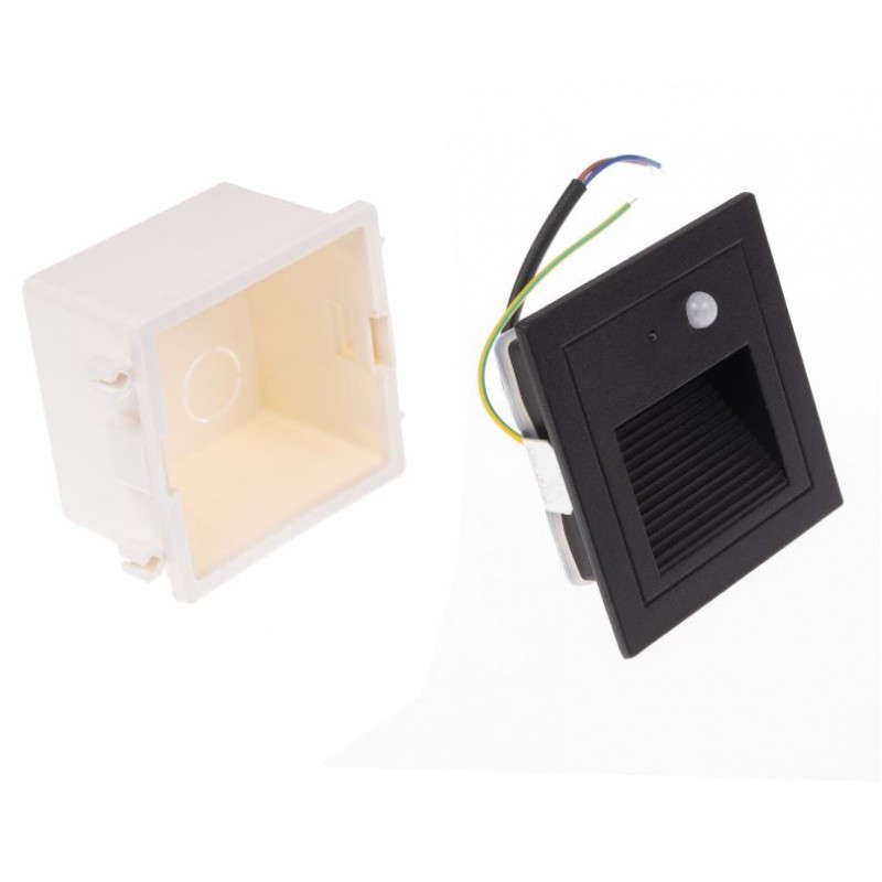 LED svítidlo vestavné na 230V s PIR pohybovým čidlem. Nejčastěji se používá jako orientační osvětlení například ke schodům nebo do chodeb. Čidlo při pohybu sepne svítidlo na cca 35 vteřin, pokud je intenzita světla v okolo pod 5 luxů. Maximální dosah čidla jsou 3 metry.